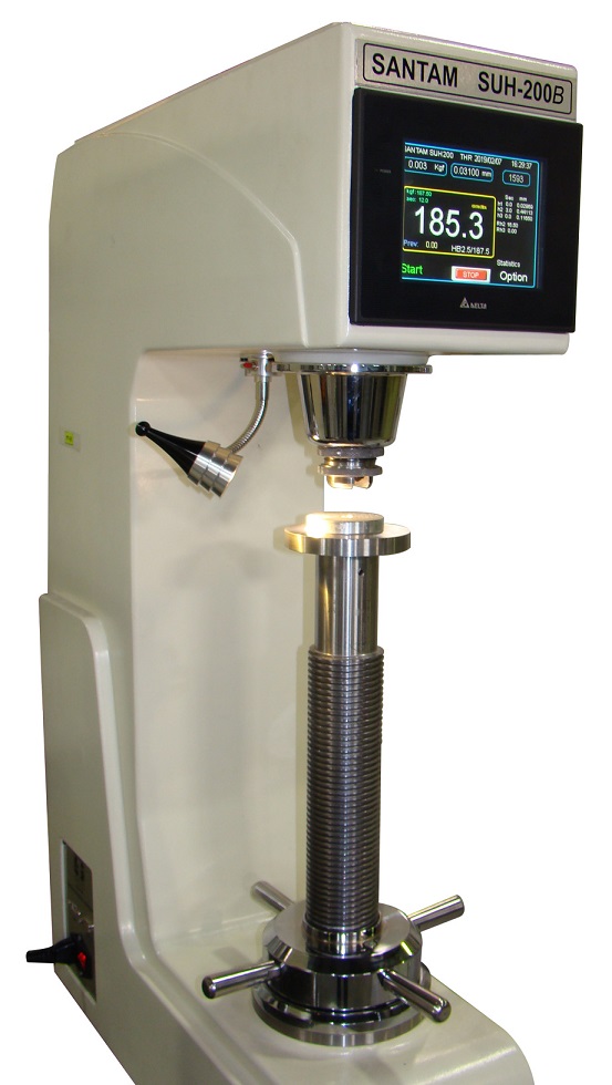 دستگاه سختی سنج SUH-200 توانایی اندازه گیری کلیه سختی های فلزات به روش راکول، ویکرز و برینل بصورت مستقیم را دارد که در روش مستقیم برای تست راکول عمق نفوذ ایندنتور مستقیما توسط دستگاه اندازه گیری و سختی محاسبه و نمایش داده میشودو برای دیگر سختی ها با محاسبات دقیق بدون نیاز به دوربین سختی اعلام می گردد، مکانیزم اعمال نیرو با مکانیزم سروو مکانیکال بسیار دقیق با کنترل پیشرفته و اندازه گیری نیرو توسط لودسل خیلی دقیق انجام شده و دارای انتخاب های گوناگون روش تست بوده بطوریکه برای راکول 15 روش، راکول سوپر فشیال 15 روش، ویکرز 8 روش و برینل 24 روش (تا ظرفیت 200 kgf) قابل تست میباشد. قابلیت نصب انواع ایندنتور های استاندارد برای روش های مختلف سختی سنجی و سندانهای مختلف به منظور نگهداری قطعات مختلف فراهم می باشد. از دیگر توانایی های دستگاه گزارش آماری از آخرین تست های انجام شده بوده و می توان همه ی پارامترهای تست بر روی نمایشگر دیجیتال لمسی (Touch Screen) را مشاهده و انتخاب کرد. دقت اندازه گیری نیرو بهتر از 0.5 % applied load (و یا 50grf خطای حداکثری) و درجه تفکیک کلی جابجایی ایندنتور دستگاه 0.05 µm می باشد و همینطور مشخصات کورس دستگاه mm0 ~ 300 و عمق کار گیر تا 200 mm می باشد.